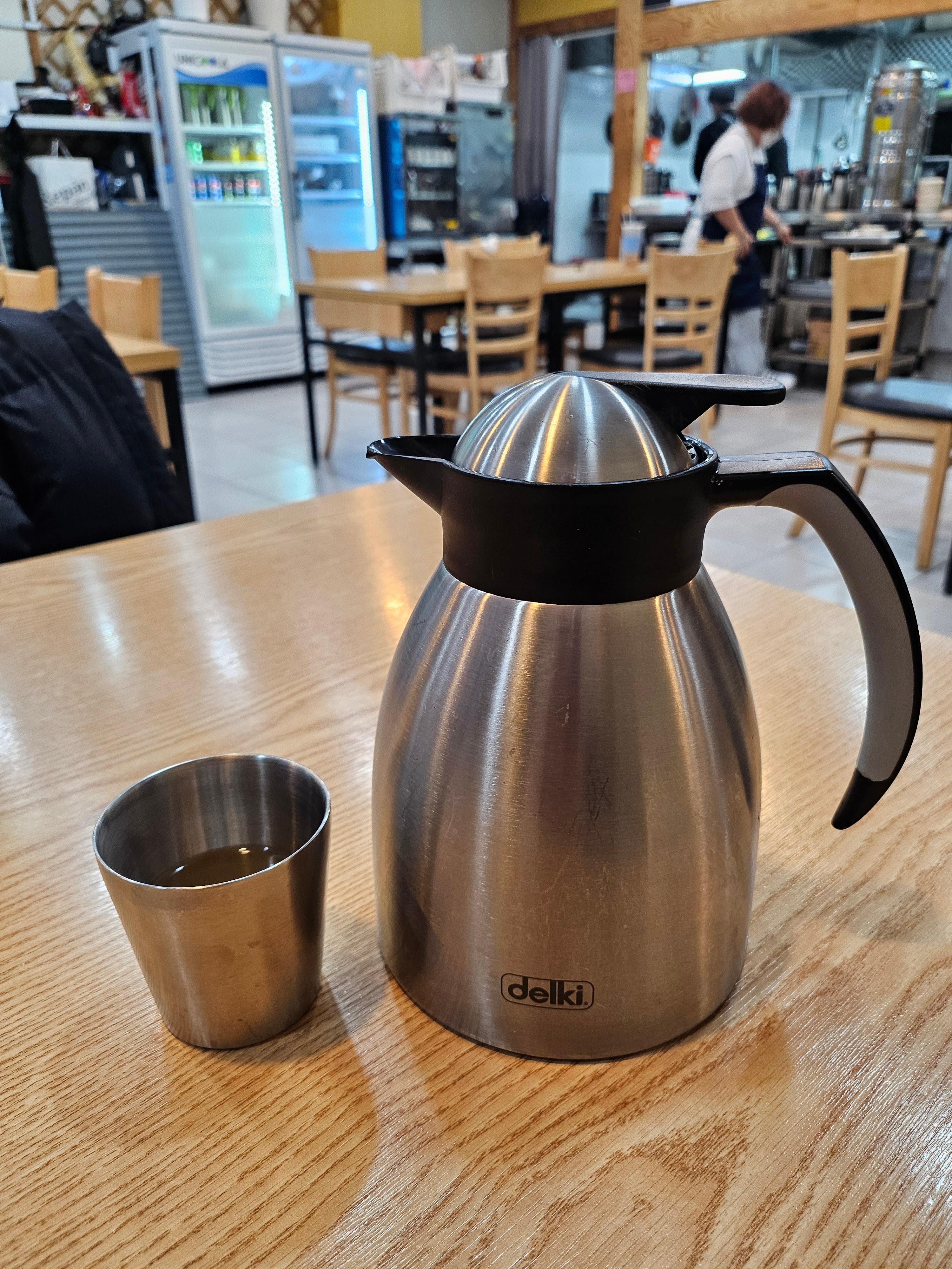 자리에 앉자마자 물 대신 육수를 줍니다.